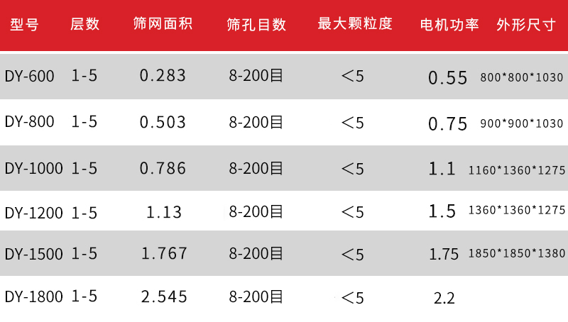 旋振篩技術(shù)參數(shù)